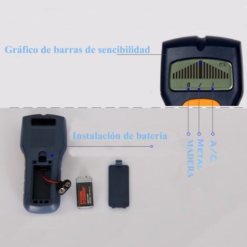 Cuando detecta la presencia de una de las opciones Voltaje, Metal o Madera, el aparato emitirá una alarma sonora y mostrara los niveles en la pantalla analógica.